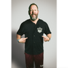 Oversized-fit, pre-shrunk button up jersey with these features: